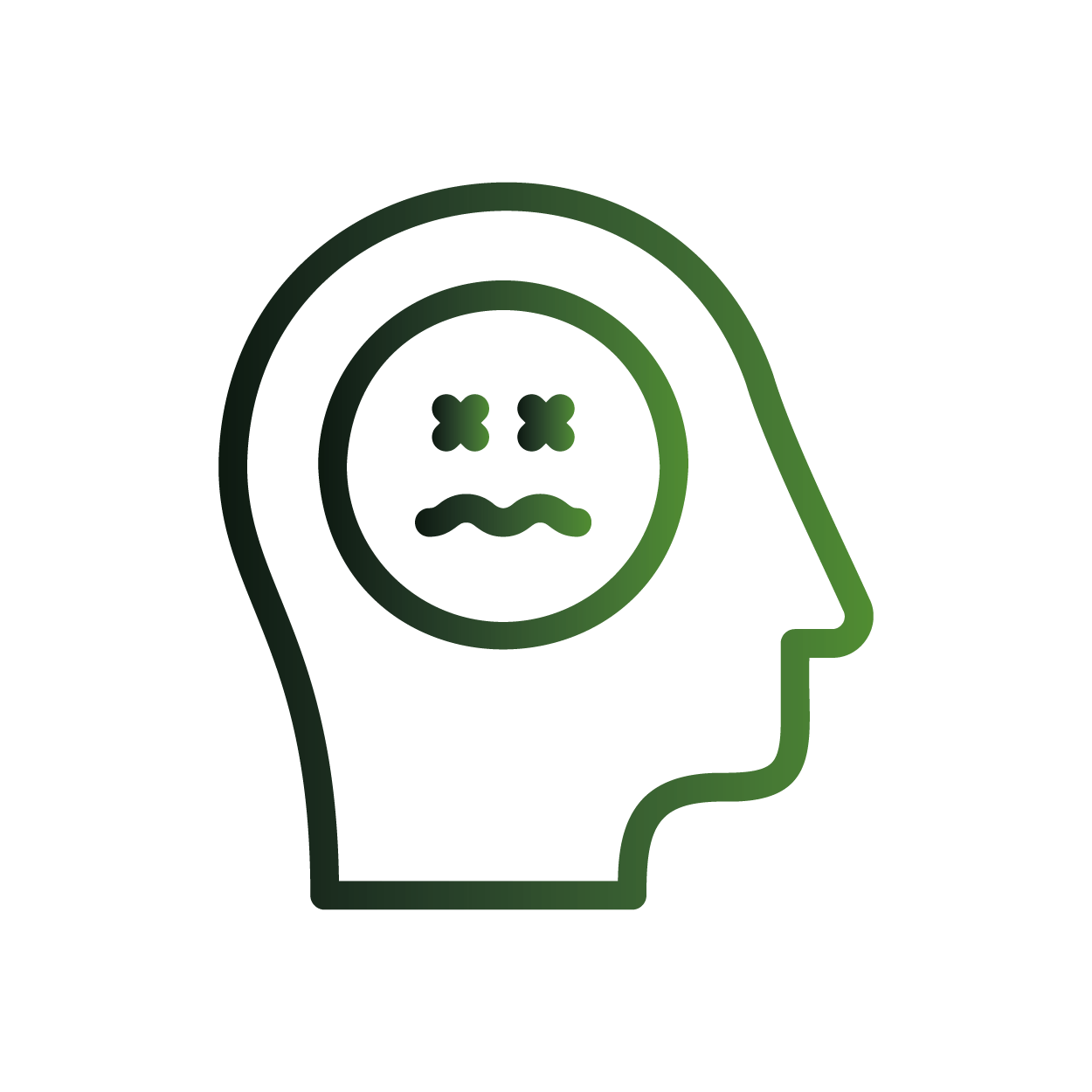 Permanentne przygnębienie, smutek, bezsilność, myśli samobójcze, brak akceptacji swojej osoby nieradzenie sobie na co dzień, rozdrażnienie, nerwowość.